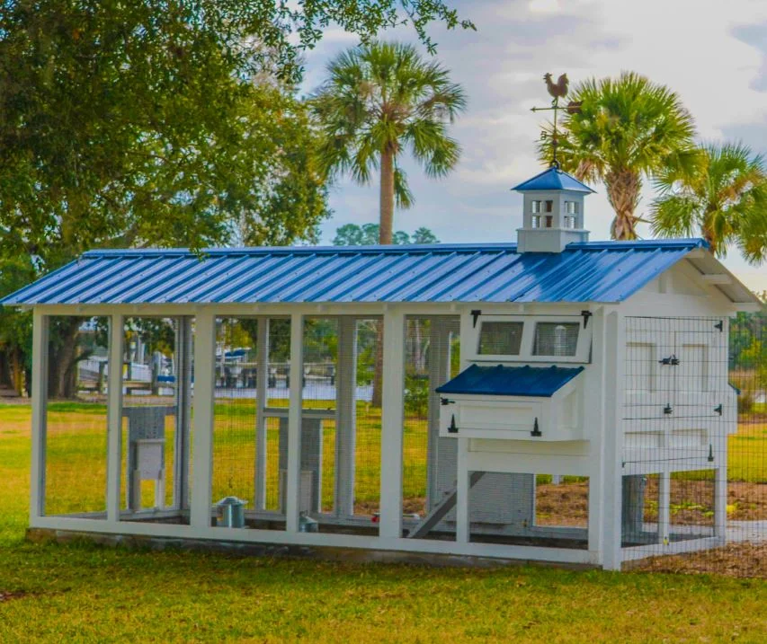 - le poulailler avec enclos : Il est très pratique lorsque l’on habite dans un quartier résidentiel et dans le cas où le jardin n’est pas clôturé. Ce petit enclos permet également de donner l’accès à l’air libre à vos poules sans avoir à ouvrir la trappe du poulailler matin et soir, les protège des prédateurs et s’avère très utile lors d’un départ en week-end.